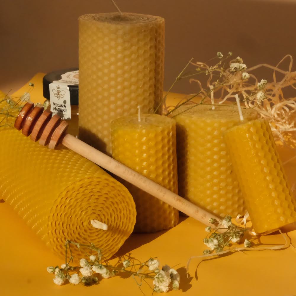 Lumânare tip fagure | Ceară naturală de albine, turnată manual