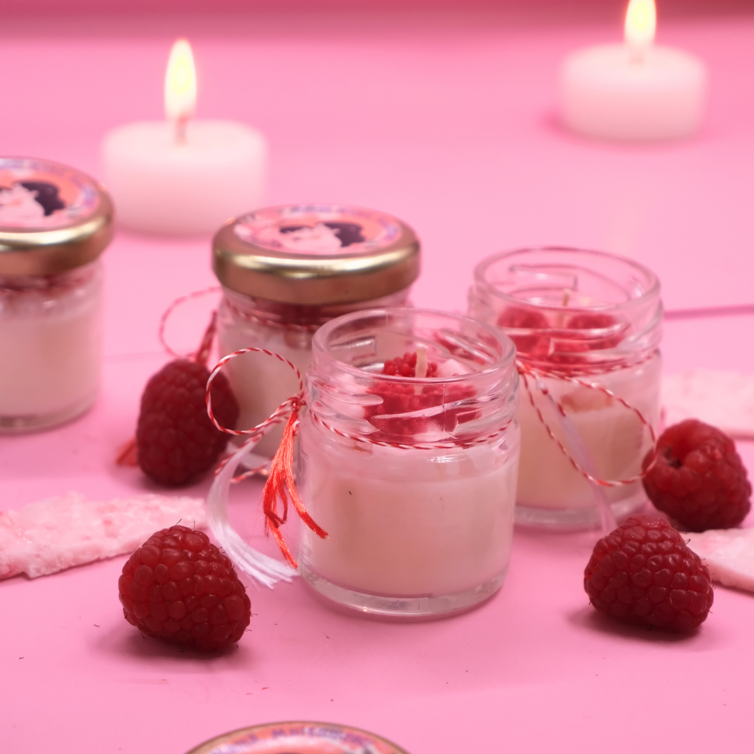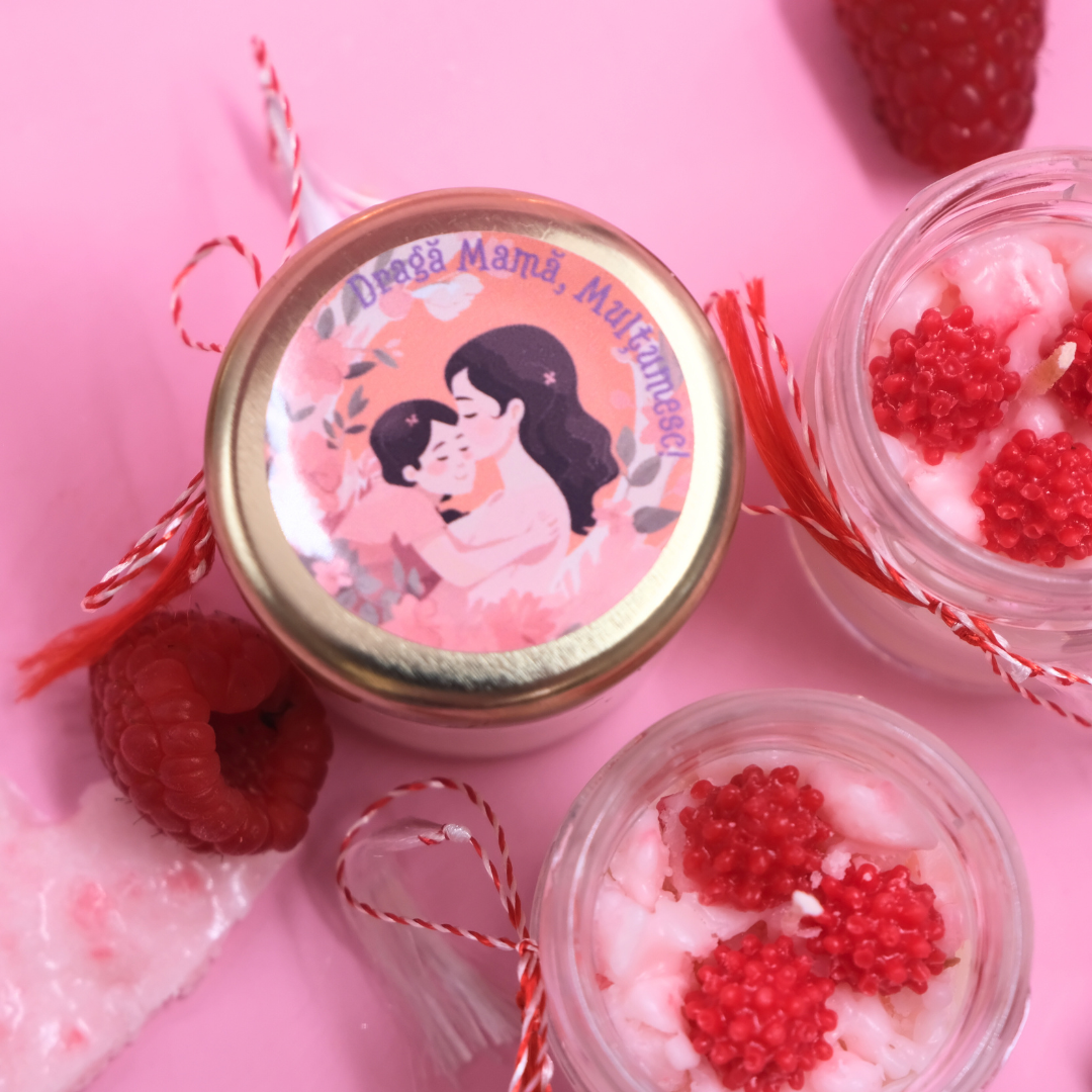 Lumânare parfumată din ceară de soia, turnată manual – „ Mini mărțișorul zmeurică ” | Ediție de Ziua Mamei și de 1 Martie, cu aromă de zmeura