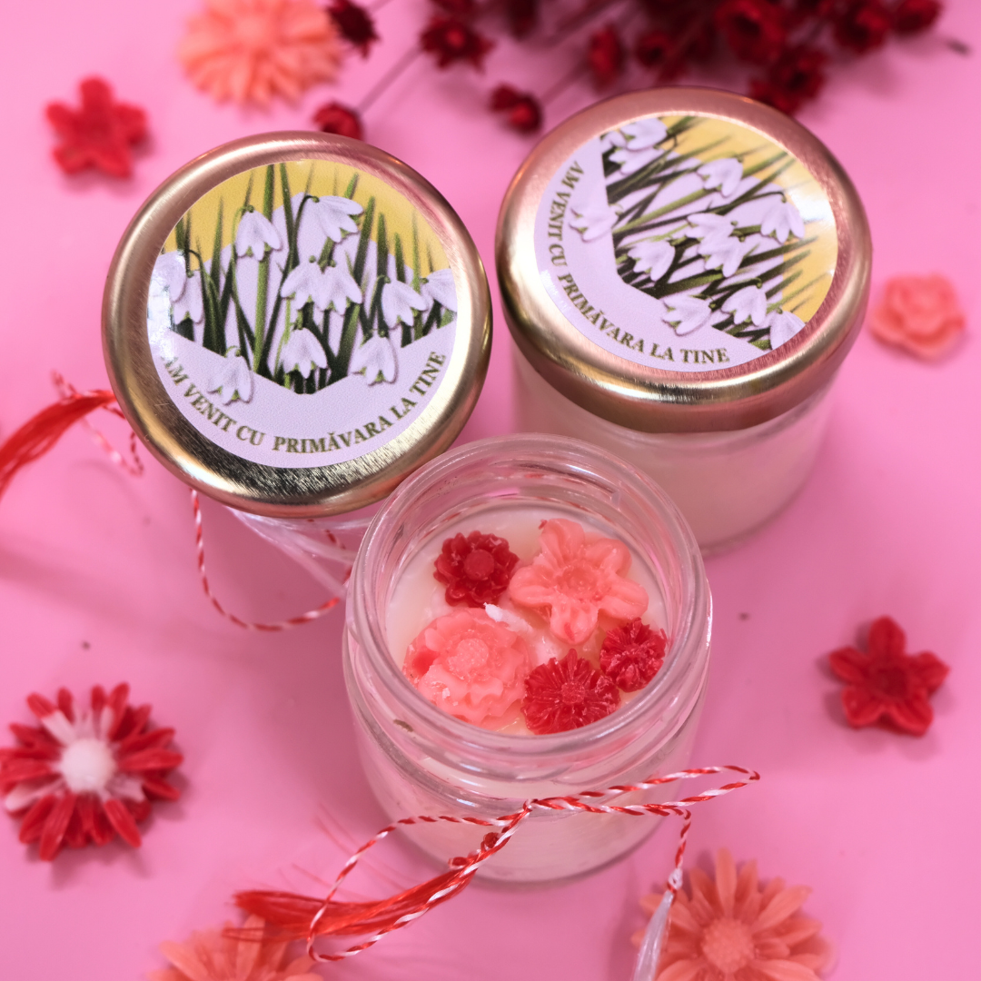 Lumânare parfumată din ceară de soia, turnată manual – „Mini Mărțișorul Primăvăratic” | Ediție de Ziua Mamei și de 1 Martie, cu aromă florală